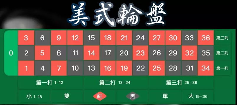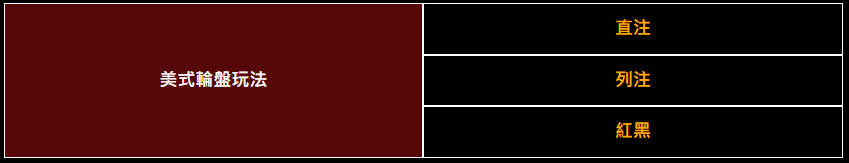 - 美式輪盤:又稱為經典輪盤,其下注盤包含直注和各種不同的組合下注方式。