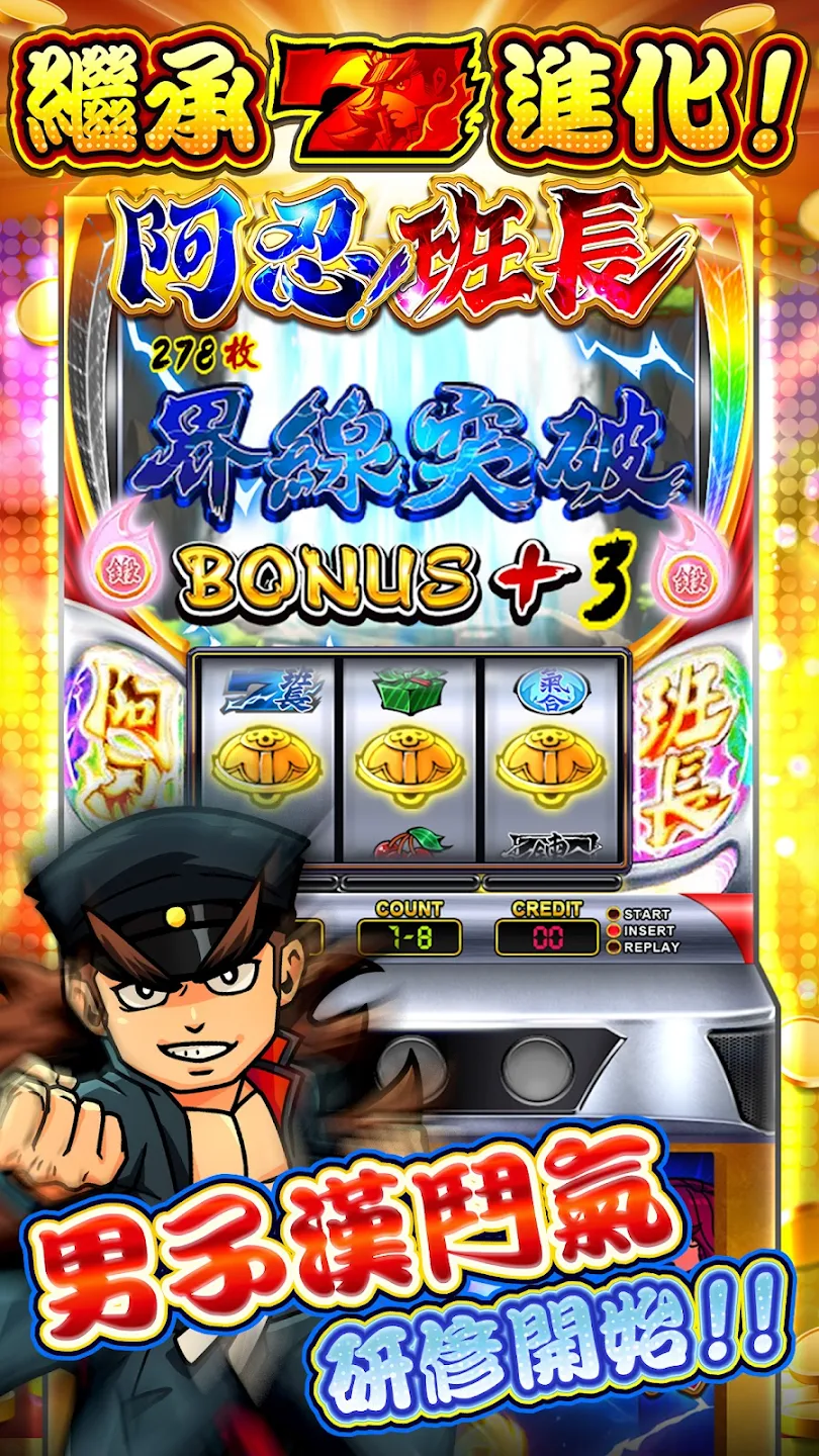 - 阿忍班長:經典神作「押忍!上班族番長」進化版,男子漢鬥氣拚連莊99,挑戰最高BB枚數。