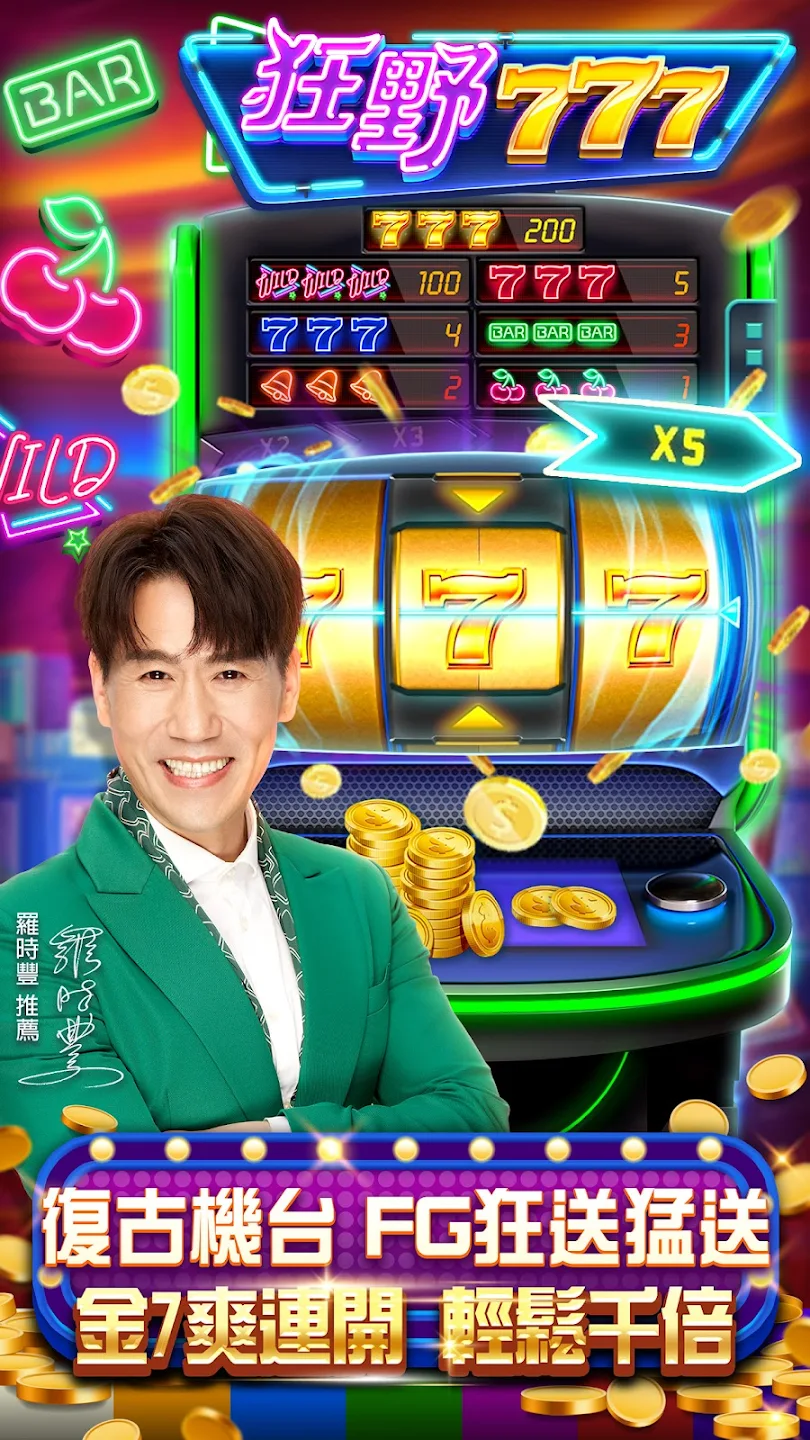 - 狂野777:經典復古機台,免費重轉狂送猛送,金7連開,獎金瘋狂翻倍。
